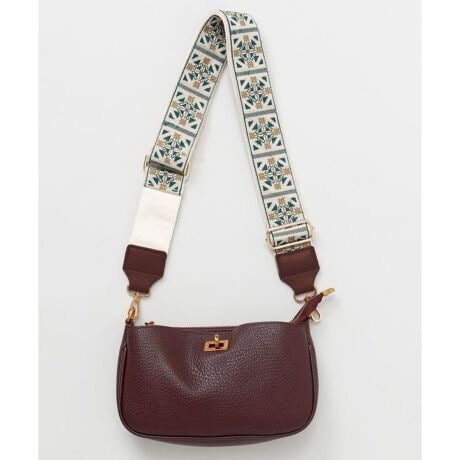 [型番:LCOP6102-2026]ルーマニア風のタイルをモチーフとしたクロスステッチの刺しゅうと、ウクライナ風の花刺しゅうをあしらったショルダーバッグ。民族調の色づかいがアクセントになり、ベルトは取り外し可能でクラッチ風にも使えます。