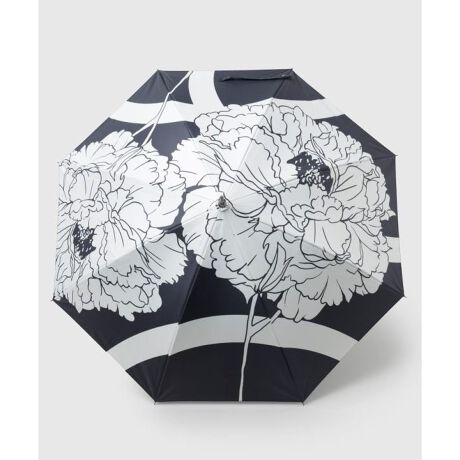 [型番:7STP6101-2026]モードな印象の菊・芍薬・百合を大胆に描いた晴雨兼用の傘。シックな配色に大柄の花が映え、スタイリッシュな佇まいを演出します。遮光率99.99%以上・UVカット率99.9%で、強い日差しや雨の日も安心。和の花の美しさを現代的に表現した、上品で存在感のあるデザインです。晴雨兼用、遮光性99.99%以上、紫外線遮蔽率99.9%、UPF50+、遮熱効果