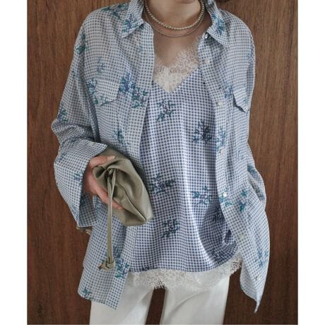 コットンシルクの肌触りの良い生地感にプリントしたシャツは、少し透け感があり柄物ながら派手過ぎず大人も着やすい1着です。