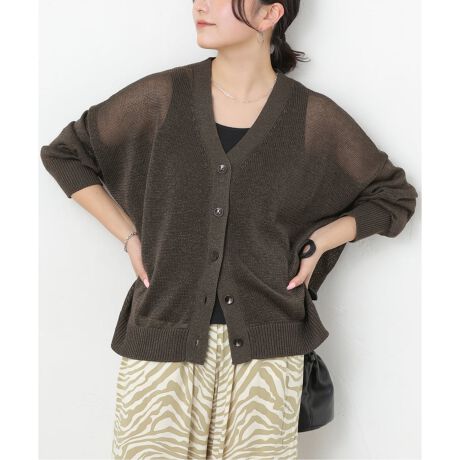 ■麻がミックスされたミドルゲージのサマーニットカーディガン