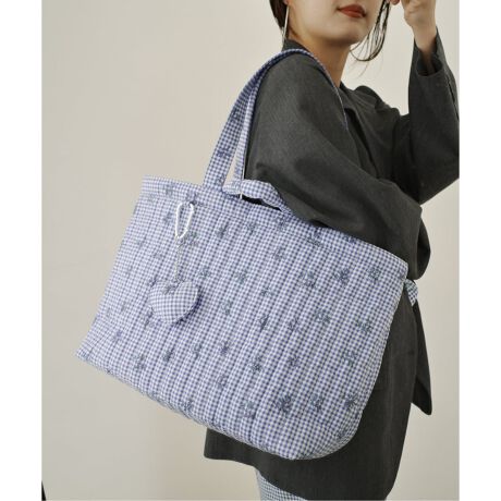 ポーチと同素材のマチがしっかりとある大容量トートバッグ。