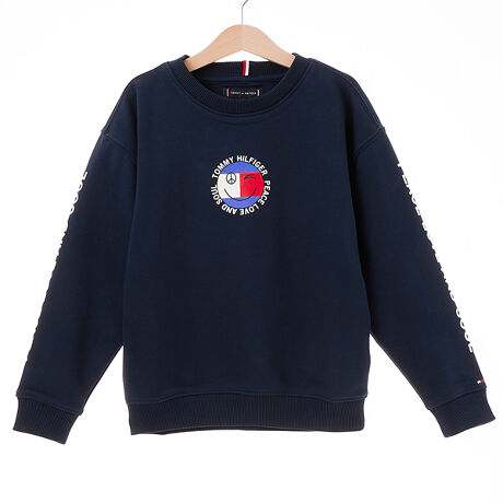 ・フラッグロゴをファニーフェイスでアレンジした、ユニークなグラフィックプリントが冴えるスウェットシャツ。キッズらしい遊び心を効かせて、毎日のファッションが楽しめるようにしました。袖にもプリントを施していて、サイドからのルックも印象的になっています。バックネックのライン使いや、三角ガゼットもポイントです。