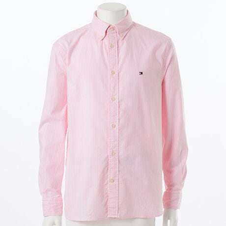 ヘアラインストライプのライトオックスフォードクロスを使用したボタンダウンシャツ。左胸にはブランドのメイングラフィックでもあるフラッグロゴのワンポイントをあしらいました。遠目には無地に見えるため汎用性が高く、無地のジャケットだけでなく柄物に合わせるなど様々なスタイルに対応します。