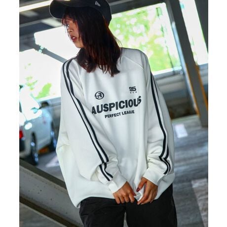 チームロゴテイストのプリントデザインと袖のライン使いがスポーティなアクセントになっています。