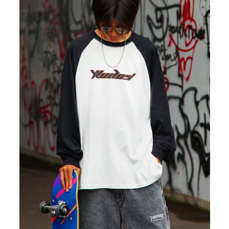 【24002-11gz】ピグメント加工 ヴィンテージ風ロゴラグランルーズシルエットロンT