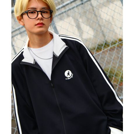 KANGOLダンボールニット 袖サイドラインワンポイント刺繍 トラックジャケット