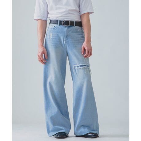 ・ヒップから裾にかけて直下で落ちるストレートデニム