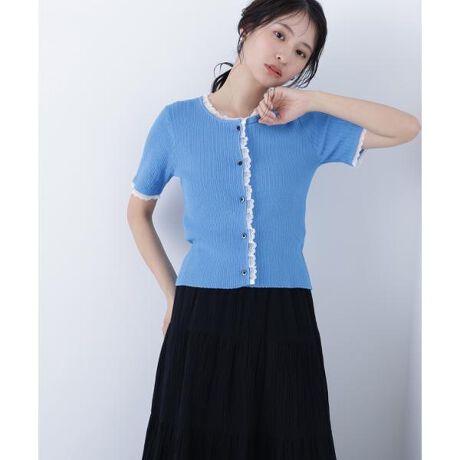 繊細な配色レースをあしらった目を引くニットカーディガン。細めのリブ編みで、すっきりと女性らしいシルエットを叶えます。フロントの貝調ボタンが夏らしい雰囲気をプラス。一枚でも羽織りでも活躍でき、コーディネートを格上げしてくれるアイテムです。<素材>アイレットを組み込んだ細めのリブニットです。<詳細>仕様・前ボタン裏地・なし透け感・なし / 光沢・なし / 伸縮性・あり生地の厚さ・普通 ※モデルの着用画像の場合、光の当たり具合により、実際の色味と異なって見えることがございます。色味は、商品単体の画像をご参照ください。