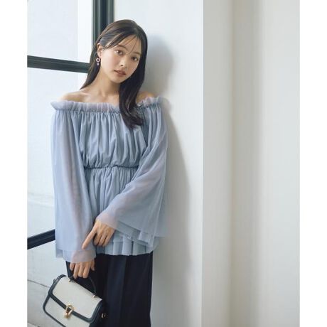 <明日香さんコラボ>チュールスリーブフレアブラウス