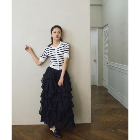 ふわふわのチュールが可愛いスカート。ランダムチュールを使用した360°どこから見ても華やかなデザインで、歩くたびに揺れるシルエットが魅力。ウエストはゴム仕様でフィットします。甘めトップス×ヒールの上品スタイルはもちろん、キャップやスニーカーと合わせたカジュアルスタイルもおすすめ。一枚で着回し力バツグンです。