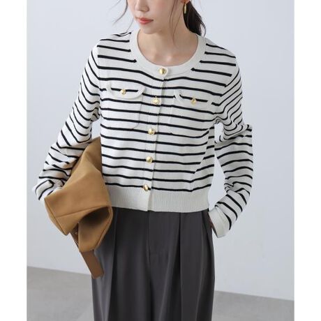 フロントポケット金ボタンニットカーディガン