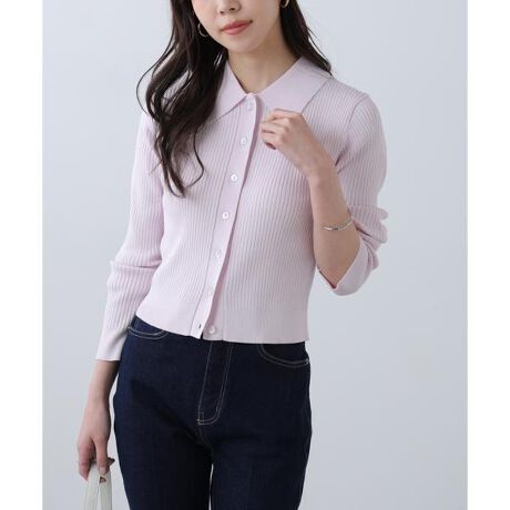 【人気インフルエンサースタッフ@h_kana43コラボ企画】【主役級ニット】 きらきらグリッターの可愛い透明ボタン付き、トレンドのポロ襟ニット。体型を拾いにくいリブ編みで、さらっとしたシーズンレスな素材を使用しています。袖口と裾はリブ仕様で着こなしやすく、一枚着はもちろん、カーディガンとしても着回せます。デニムやスラックス、ティアードスカート合わせがおすすめです。※モデルの着用画像の場合、光の当たり具合により、実際の色味と異なって見えることがございます。色味は、商品単体の画像をご参照ください。