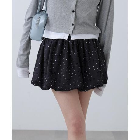 ヒップハンガーで穿ける短め丈のバルーンミニスカート。短め丈ながらインナーパンツ内蔵で安心感があり、小柄の方にもおすすめです。ウエストはぐるりゴム仕様でラクなはき心地。ゆるめトップスと合わせて、裾から少しのぞかせるスタイリングもおすすめです。黒ベースにドット、黒ベースにチェック、無地オフカラー、オフカラーベースにドットの4素材展開です。※モデルの着用画像の場合、光の当たり具合により、実際の色味と異なって見えることがございます。色味は、商品単体の画像をご参照ください。