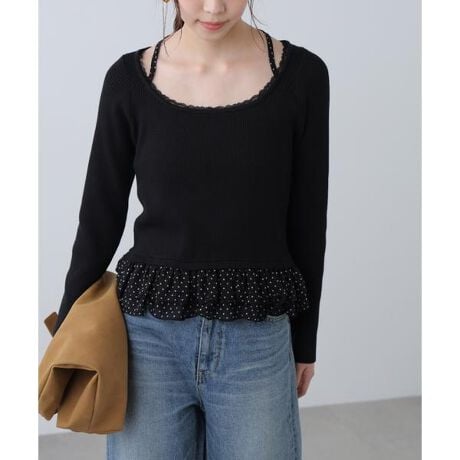 ドットフリルレイヤードニット
