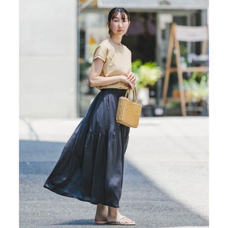 シンプルで着回しの効くフレンチスリーブTシャツとふんわりと広がる滑らかな生地で仕立てたティアードスカートのセット。配色の異なる組み合わせが洒落感の効いたスタイリングを完成してくれます。スカートは総ゴムなので見た目以上に楽な着心地がポイント。お手持ちのアイテムとも組み合わせれば、コーディネートのレパートリーが一気に広がるオススメのセットです。