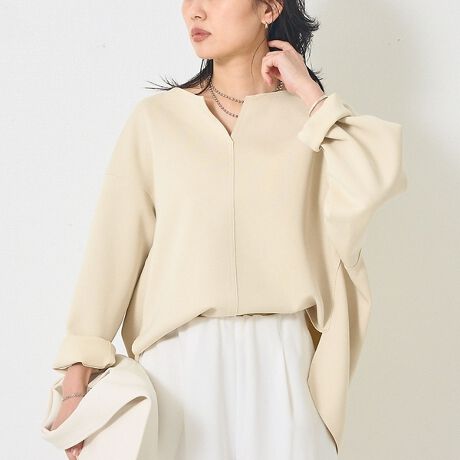 ダブルフェイス素材で仕立てたプルオーバーブラウス。