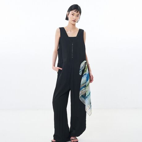 小さなボタン列が効いた、着映えも着心地もかなうオールインワン。