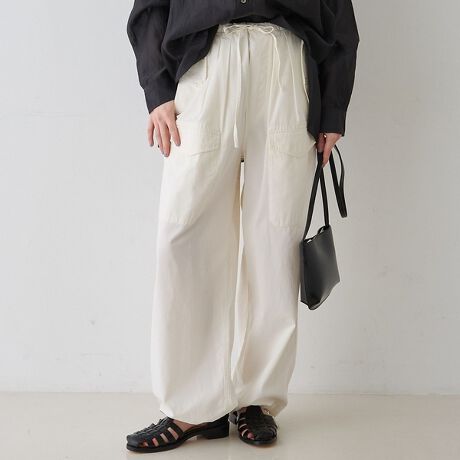 裾を絞って、お好みのシルエットで着用可能。