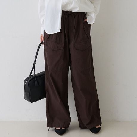 裾を絞って、お好みのシルエットで着用可能。