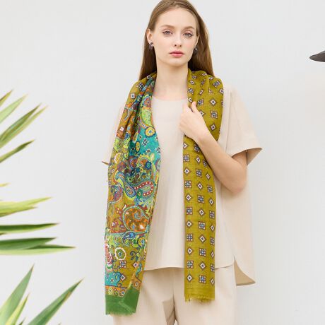 ペイズリープリントと小紋柄を使用した綺麗で軽やかなストール。