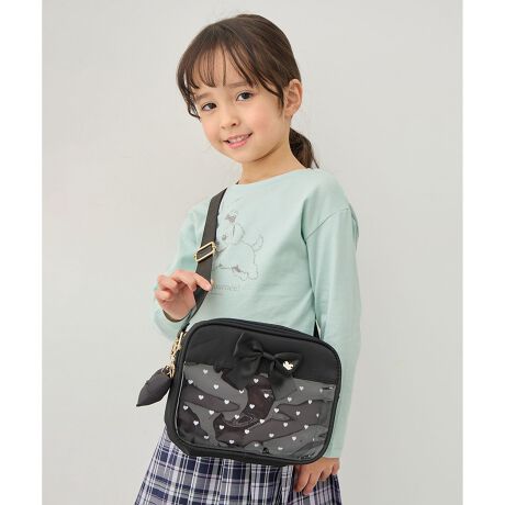 フロントにはリボンをあしらい、クリアポケットはハートドット柄になっているので、何も入れなくてもキュートなデザインです。