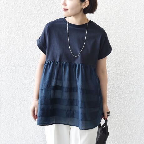 《予約》【WEB限定】〈手洗い可能〉布帛 コンビ ペプラム TEE
