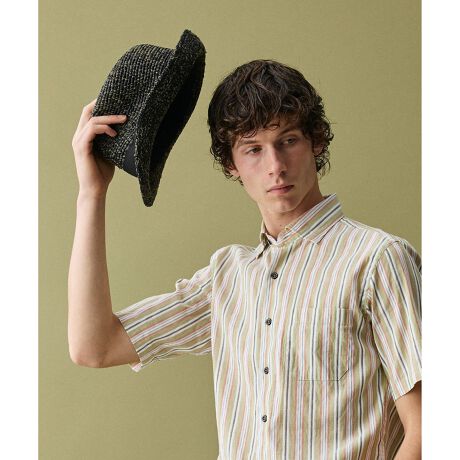 複数の色が混ざり合ったようなメランジ感が特徴のハットです。シンプルながらも表情豊かで、夏の装いのアクセントになります。