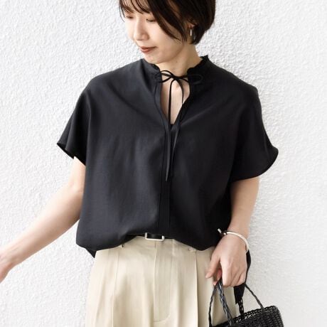 リボンで変化を楽しめる着映えギャザーブラウス