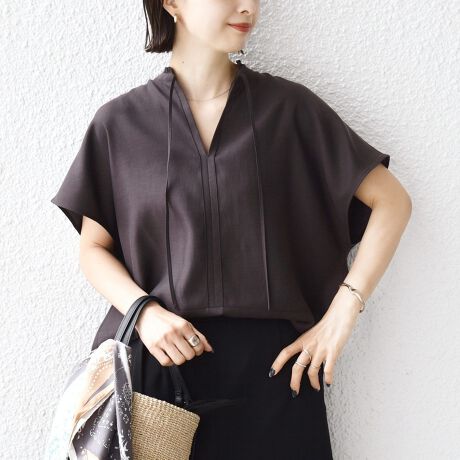 肩先にかかる袖丈で、気になる二の腕をさりげなくカバーしつつ、軽やかで涼しげな印象を演出します。