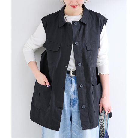 レイヤードでこなれ感をプラスするミリタリーベスト。