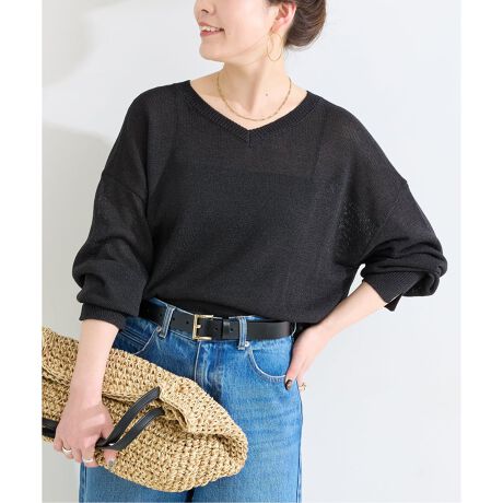 カジュアル過ぎない程よいつや感ある上品な素材感が特徴で、さらっと肌離れが良く暑い時期も快適に着れるニットになります。2WAY仕様で前後お好みでVネックかボートネックで着られ、ゆるっとした程よいサイズ感は幅広いコーディネートを楽しめます。袖リブはスリットが入ったデザイン性のあるディティールになっています。