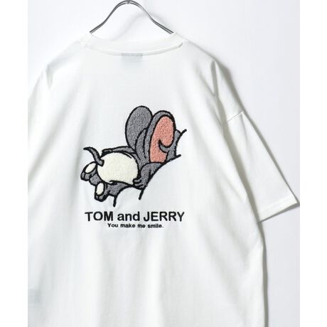 Tom and Jerry/トムとジェリー オーバーサイズ ワンポイント サガラ刺繍 半袖Tシャツ レディース メンズ