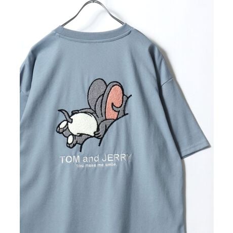 Tom and Jerry/トムとジェリー オーバーサイズ ワンポイント サガラ刺繍 半袖Tシャツ レディース メンズ