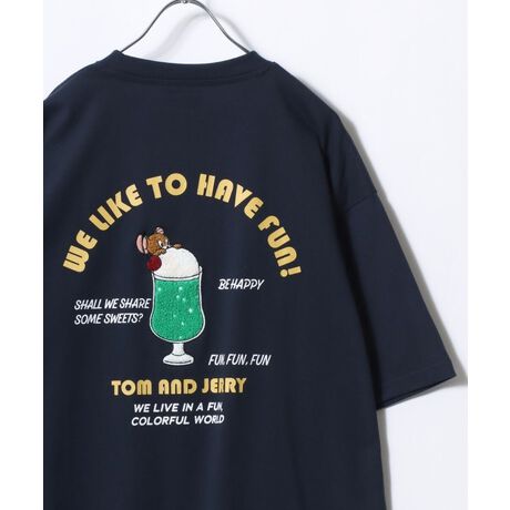 Tom and Jerry/トムとジェリー オーバーサイズ ワンポイント サガラ刺繍 半袖Tシャツ レディース メンズ