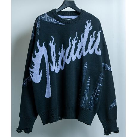 MONTEREY-LIGHT(モントレー-ライト)ロゴジャガード オーバーサイズ ダメージ ニット