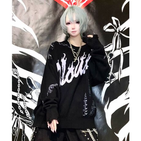 ストリート感あふれるユニセックスなオーバーサイズ ダメージニットです。