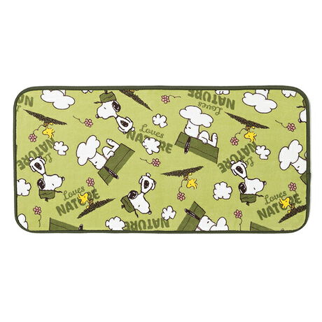 スヌーピーのふかふかで可愛いラグマットです。丸洗いOKなので衛生的で嬉しい♪グリーンのデザインがお部屋を明るくしてくれます☆ベッドやソファーの足元などに敷いてみてください♪