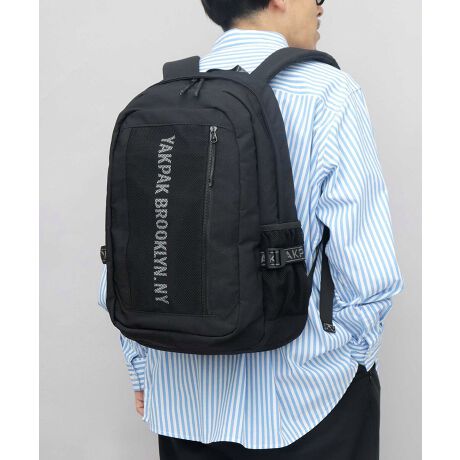 メッシュから覗く、ロゴプリントが目を惹く、YAKPAKのスクエア型バックパック。スクエア型のベーシックなフォルムに、デイリーに使いやすいサイズ感が魅力。