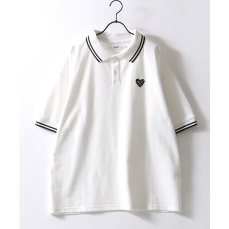 【SITRY Heart Embroidery Polo Shirt/別注 オーバーサイズ ハートロゴ ワンポイントラメ刺繍 リブライン 半袖ポロシャツ レディース メンズ】