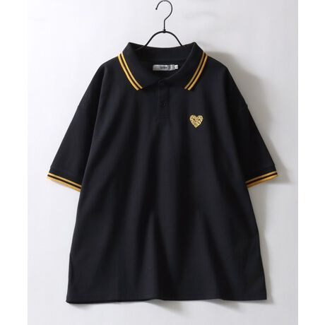 【SITRY Heart Embroidery Polo Shirt/別注 オーバーサイズ ハートロゴ ワンポイントラメ刺繍 リブライン 半袖ポロシャツ レディース メンズ】