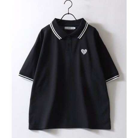 SITRY Heart Embroidery Polo Shirt/別注 オーバーサイズ ハートロゴ ワンポイントラメ刺繍 リブライン 半袖ポロシャツ レディース メンズ