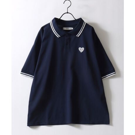 【SITRY Heart Embroidery Polo Shirt/別注 オーバーサイズ ハートロゴ ワンポイントラメ刺繍 リブライン 半袖ポロシャツ レディース メンズ】