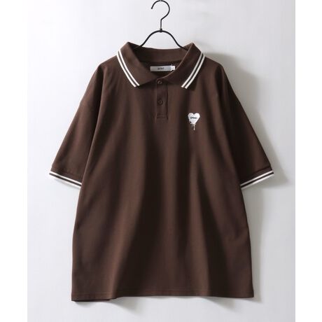 【SITRY Heart Embroidery Polo Shirt/別注 オーバーサイズ ハートロゴ ワンポイントラメ刺繍 リブライン 半袖ポロシャツ レディース メンズ】