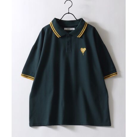 SITRY Heart Embroidery Polo Shirt/別注 オーバーサイズ ハートロゴ ワンポイントラメ刺繍 リブライン 半袖ポロシャツ レディース メンズ