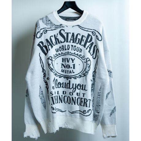 BACKSTAGE PASS(バックステージパス) のBONZO-LIGHT(ボンゾーライト)ロゴジャガード オーバーサイズ ダメージニットです。