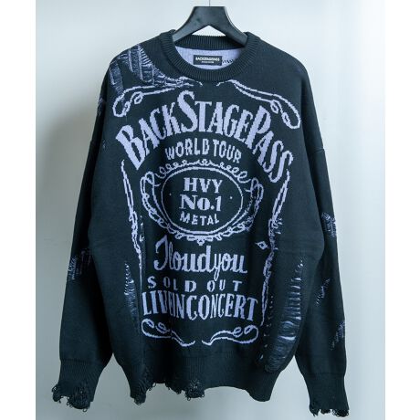 BACKSTAGE PASS(バックステージパス) のBONZO-LIGHT(ボンゾーライト)ロゴジャガード オーバーサイズ ダメージニットです。