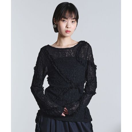 新素材で再登場した、フリルレーストップス