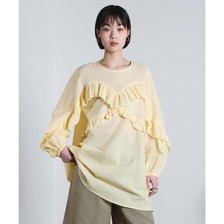軽やかに揺れるフリルが主役のチュニックブラウス