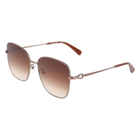 オーバーサイズのスクエアシェイプが特徴のモデル。テンプルにブランドシンボルのメタルホースをあしらっています。
