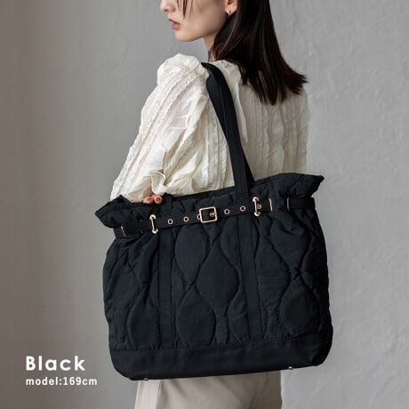 ベルトデザインキルティングトートバッグ 【aroco/アロコ】
